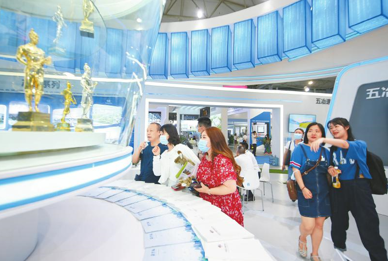 本次首届川渝住博会,成为推进川渝深度合作的重要平台。图为携近20座鲁班奖进馆的五冶展示区,不断吸引观众前来参观考察。(中国五冶供图)