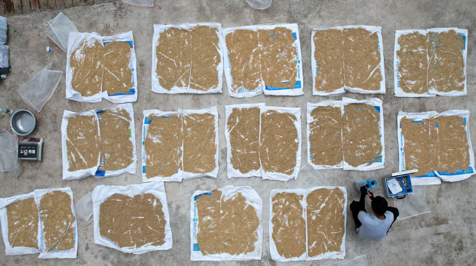 技术人员正在检测稻谷水份含量
