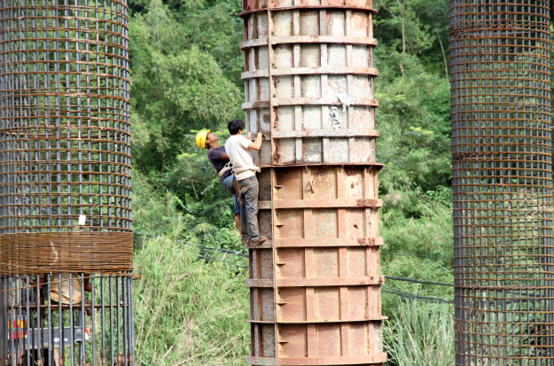 筑路工人加紧为黄连坪大桥墩柱架模