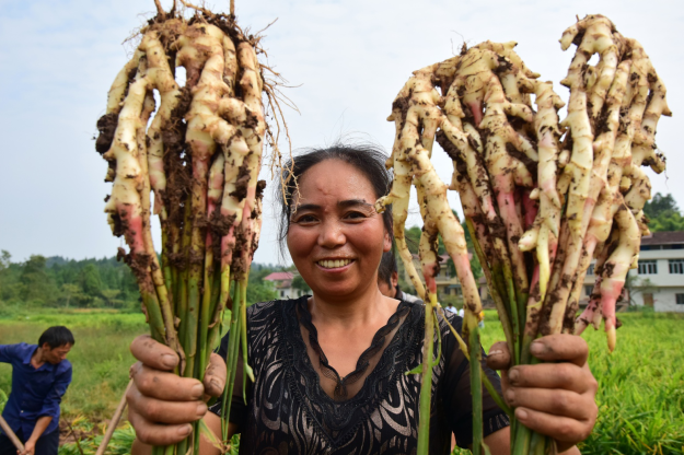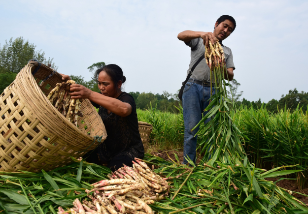 随着中秋临近,内江市东兴区永福镇1500亩“地标”生姜迎来丰收季,四处可见农户采收、冲洗、分装生姜的忙碌身影。