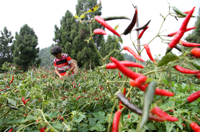 内江市东兴区永福镇山青庙村海椒种植户抢抓时机采摘海椒