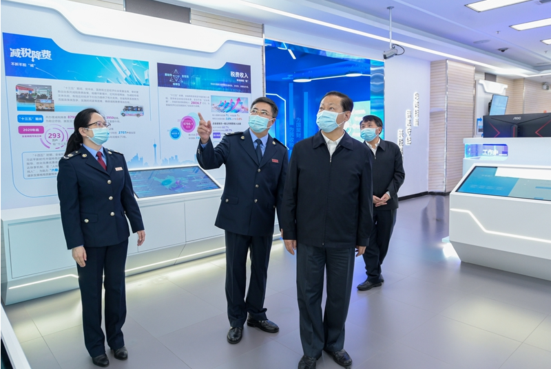 彭清华首先来到省税务局机关,参观“走进红色税收”川陕苏区税收文物陈列展,对省税务局用好红色资源开展党史学习教育,引导税务干部传承红色基因、激发奋进力量的做法给予肯定。他走进省税电指数办公室、四川税务大数据决策指挥中心,与干部职工亲切交谈,听取构建完善“经济景气度税电指数”指标体系辅助全省经济动态监测情况介绍,询问了解运用大数据手段开展税收政策效应分析、跟踪评估减免税等政策实施效果情况。他说,设立“税电指数”是我省一项开创性工作,凝聚着税务部门、电力部门的智慧和心血,对党委政府精准客观研判经济形势、实施经济决策管理和宏观调控、税务部门更好了解企业运行情况等起到了重要参考作用,要继续完善运行机制、统计口径和指标体系,不断提升监测经济运行的能力。