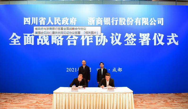 10月27日,四川省人民政府与浙商银行股份有限公司在成都签署全面战略合作协议。省委副书记、省长黄强会见浙商银行董事长沈仁康一行,并共同见证协议签署。