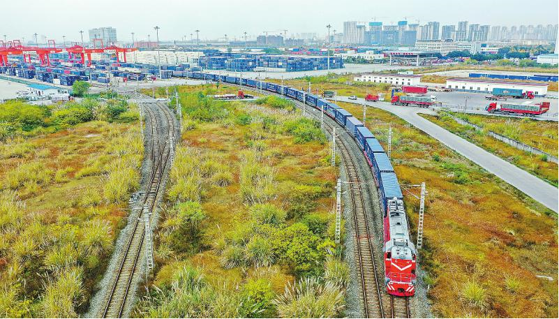 11月22日上午10时,满载1300吨四川茶叶的中亚专列从成都国际铁路港出发。 (白桂斌 摄 视觉四川)