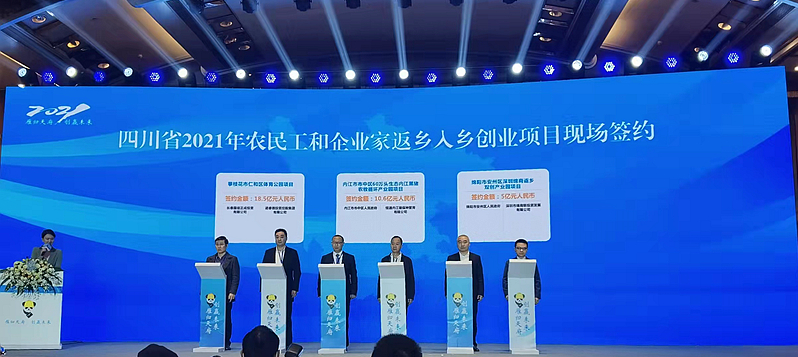 今年以来,省农民工工作领导小组先后在福州、贵阳、杭州、广州开展了四川省2021年农民工及企业家返乡入乡创业项目系列推介活动,推介优质创业项目202个,引资额达750亿元。当天举行的集中签约活动,是推介活动成果的深度拓展和集中呈现。