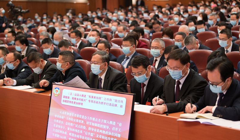 报告指出,一年来,省政协及其常委会牢牢把握加强思想政治引领、广泛凝聚共识这一中心环节,切实肩负实现大团结大联合的政治责任,以学习贯彻中共十九届六中全会精神和开展党史学习教育为重点凝心铸魂,聚焦学史明理、学史增信、学史崇德、学史力行,扎实深入开展党史学习教育和庆祝中国共产党成立100周年系列活动,团结引导广大委员和各族各界人士筑牢坚决拥护“两个确立”、坚定践行“两个维护”的思想政治根基。牢牢把握立足新发展阶段、贯彻新发展理念、融入新发展格局、推动高质量发展,围绕贯彻中央和省委经济工作会议精神,聚焦“战略牵引”,助推成渝地区双城经济圈建设;聚焦“第一动力”,助力创新驱动引领高质量发展;聚焦“风险防范”,协力常态化疫情防控和安全生产;聚焦“绿色发展”,助推美丽四川建设;聚焦“急难愁盼”,助解群众操心事烦心事揪心事,建言成果得到高度重视,凝聚共识取得新的成效。省政协及其常委会以深入推进“有事来协商”工作和“助力巩固脱贫、助推乡村振兴”专项活动为抓手打造品牌,政协履职特色更加鲜明;以坚持和加强党对政协工作的全面领导为根本保证,政协党建和专门协商机构建设更加有力。
