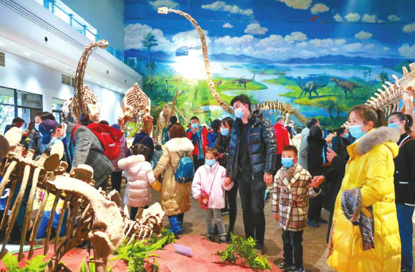 春节假期已过,恐龙博物馆内仍人气爆棚。 叶卫东 摄