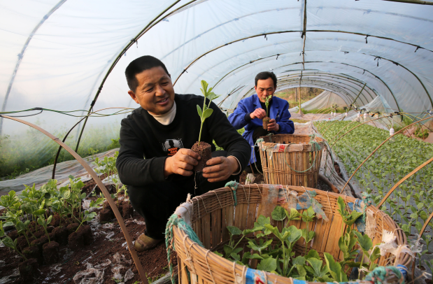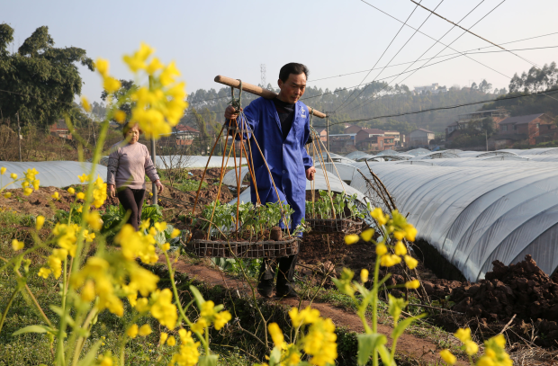 初春时节,四川省内江市东兴区椑木镇高崇村的郭北西瓜种植专业合作社种植基地里,村民们正抢抓农时,集中移栽西瓜幼苗,积极投入春耕春管中。