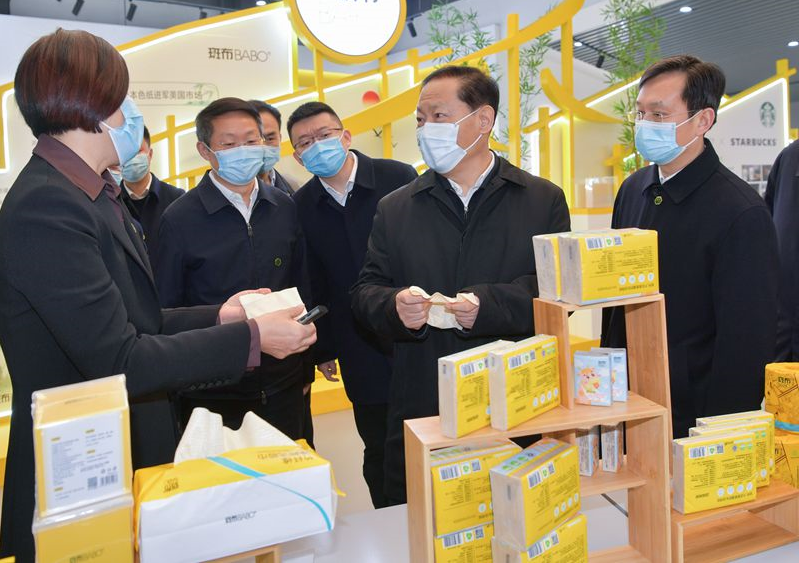 2月22日,省委书记彭清华到眉山市青神县斑布健康竹产业园调研,了解竹产业高质量发展情况。