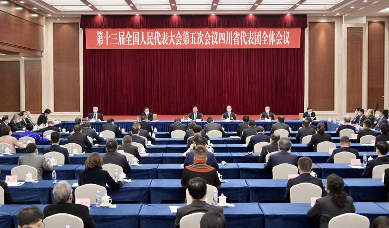 3月3日下午,在北京出席十三届全国人大五次会议的四川代表团在驻地举行全体会议。省委书记、省人大常委会主任彭清华主持会议并讲话。