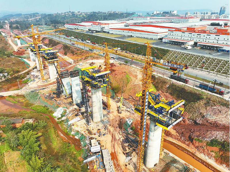 3月9日,位于宜宾三江新区的渝昆高铁宜宾段沙坪镇特大桥项目现场。渝(重庆)昆(昆明)高铁是我国“八横八纵”高铁网京昆通道的重要组成部分。 (兰锋 摄 视觉四川)