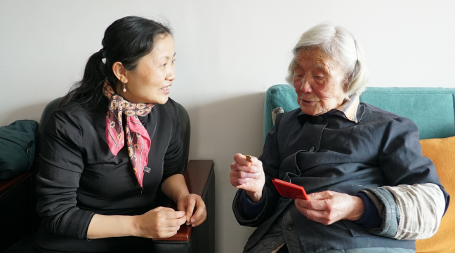 这样一位可敬可亲的独居老人,年事已高,行动不便,依然坚持自己买菜,自己做饭,不愿耽误来探望、照顾她的学生和街坊邻居的时间。她每天坚持收看新闻了解国家大事,为了不给党组织增添麻烦,隔三插五,她都会主动给学校和社区打电话报一声“平安”。