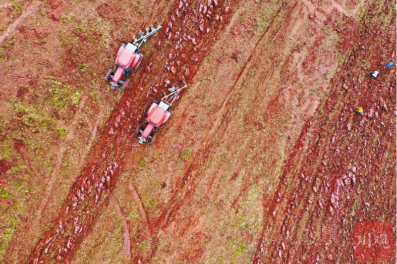 3月11日,巴中市恩阳区尹家镇大垭口村约70亩的低效经济作物园里,随着旋耕机“突突”作响,村民挥舞锄头开沟施肥,为大豆、玉米种植打下基础。“按照目前的土地治理进度,3月中旬种下玉米苗,5月套种大豆。”大垭口村党支部书记张华满怀期待。