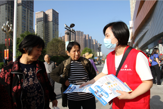 党员突击队员向过往群众宣传反诈防诈知识
