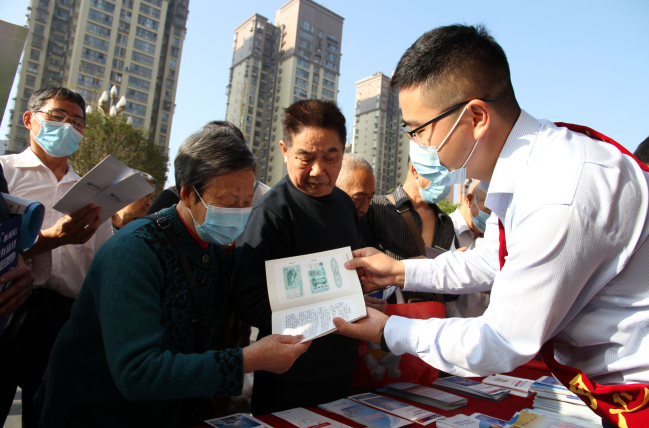工作人员向过往群众宣传数字金融知识
