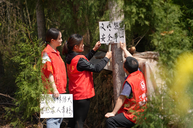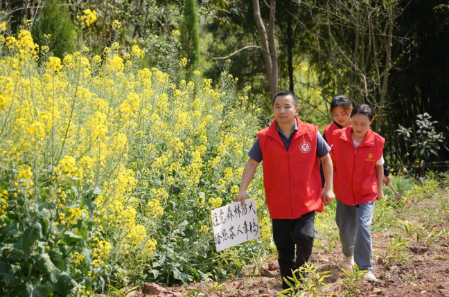随着气温不断回升,森林防火安全隐患日益加大,为全面做好森林防灭火工作,杜绝森林火灾的发生,3月15日,四川省内江市东兴区永福镇鲤鱼塘村驻村工作队深入田间地头张贴森林防火标识、宣传森林防火知识,让森林防火家喻户晓,意识深入人心。
