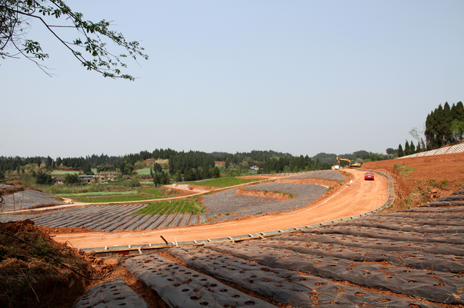 施工机械忙碌在公路建设现场