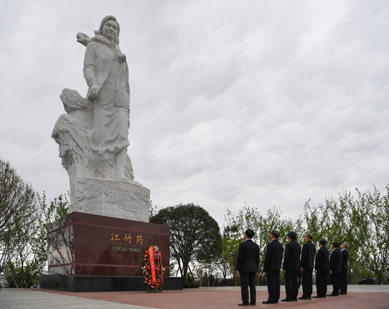 3月22日,黄强在自贡市大安区江姐故里红色教育基地,向江竹筠烈士雕像敬献花篮,并参观烈士事迹展。