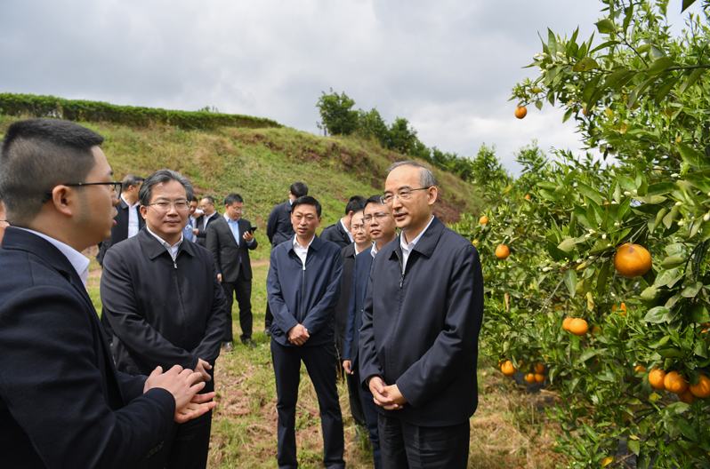 3月22日,黄强在富顺县狮市镇马安村,实地查看晚熟柑橘生产情况。