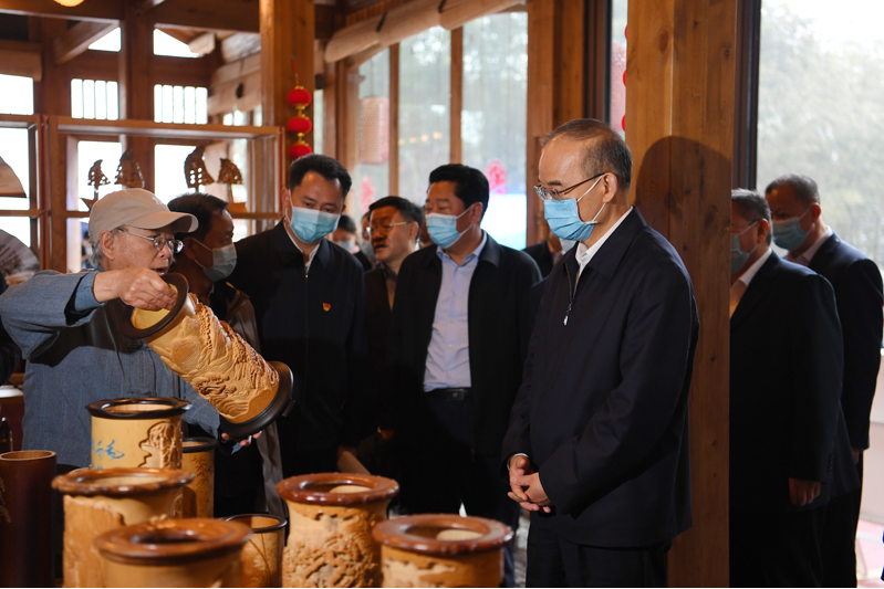 3月21日,黄强在宜宾蜀南竹海调研竹产业和文旅融合发展工作。