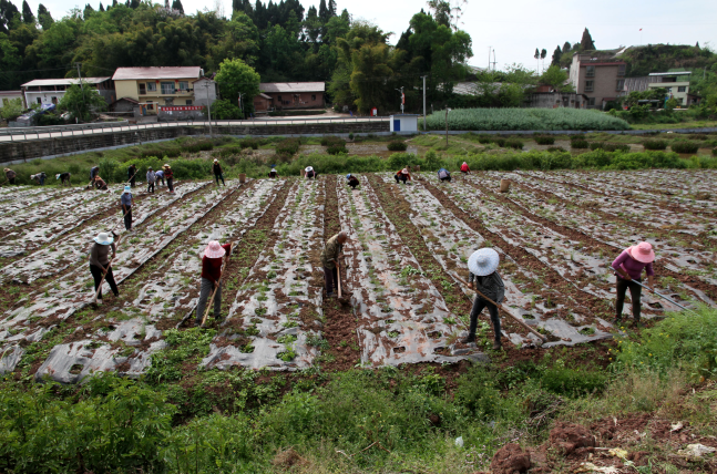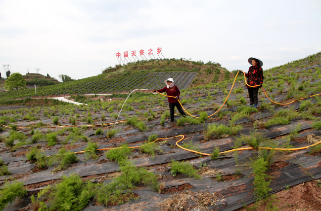 当地农户正在对天冬进行田间管理
