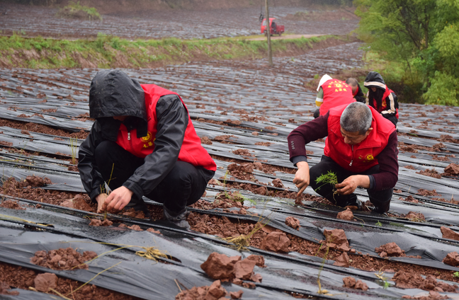 镇、村志愿者正在栽种天冬