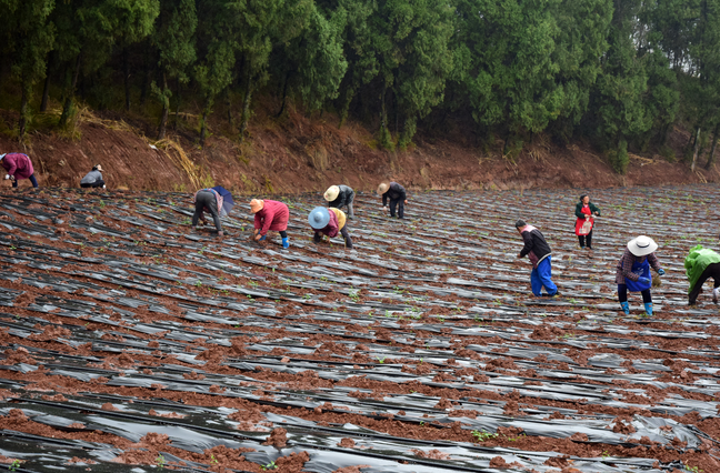 按计划,熊朝松将在铁山村种植500亩天冬和大豆、玉米等大春作物。前期已将地膜覆盖完成,滴灌设备也已安装到位,但由于今年春季少雨,一直无法下种。昨日,见旱情缓解,熊朝松便连忙组织运送种苗、联系工人,趁着天时,抓紧栽种。