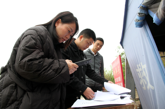 工作人员在该村森林防火检查点了解清明节期间森林防灭火工作推进情况