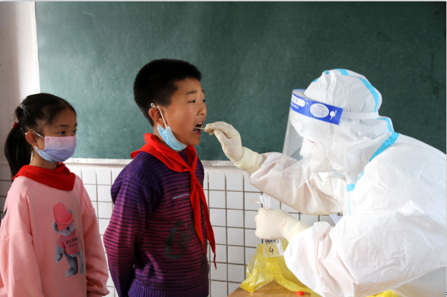医护人员为椑南小学学生进行核酸采样