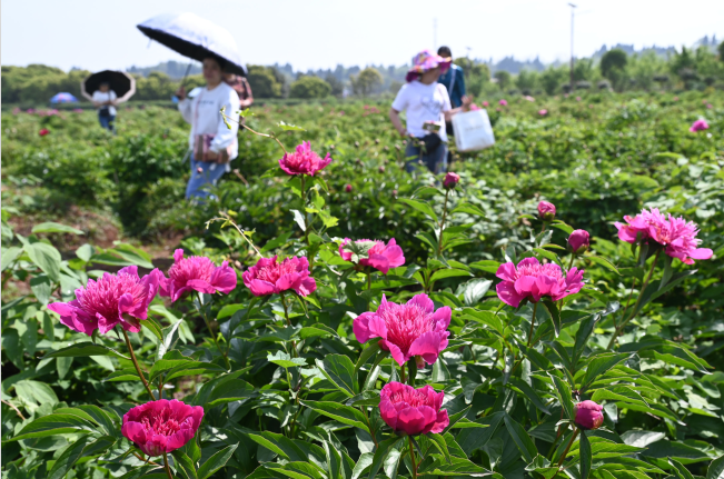 近日气温回升,四川省内江市东兴区田家镇正子村“长江田园”的10万余株牡丹花次第绽放,花香四溢,成为当地有名的“网红打卡地”,吸引了不少游客前来赏花拍照。