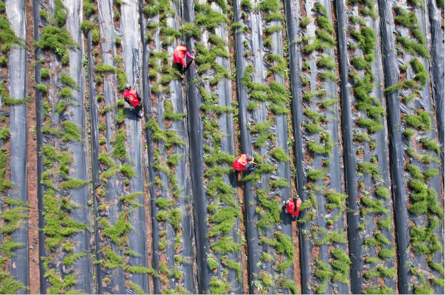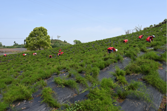 2022年4月19日,在四川省内江市东兴区郭北镇青台村,村民们正在天冬种植基地里劳作。