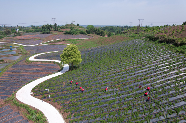 谷雨将至,四川省内江市东兴区郭北镇青台村的天冬产业园区里,农民积极抢抓农时,开展除草、施肥等春管作业,呈现一派生机盎然的繁忙景象。