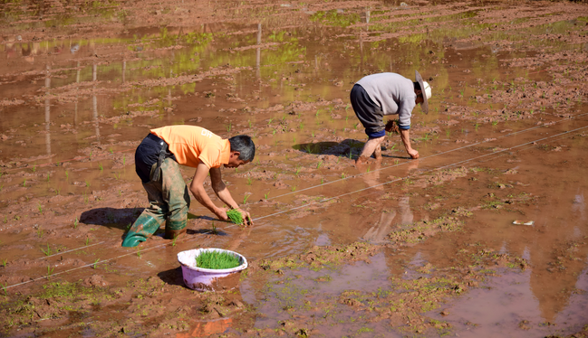 村民正在插秧