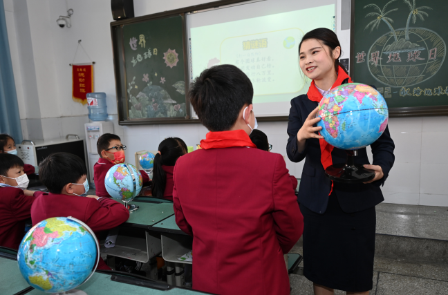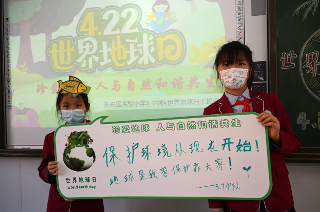 当日,为迎接第53个世界地球日的到来,四川省内江市东兴区实验小学开展“珍爱地球·人与自然和谐共生”主题班会活动,通过普及地球科学知识、创作生态环保主题绘画等方式,让学生了解“世界地球日”活动内涵和意义,增强他们热爱地球、节约资源和保护环境的意识。