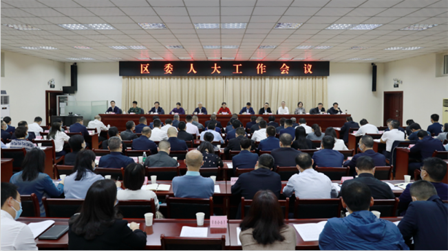 4月21日,龙马潭区委人大工作会议召开,区委书记涂曲平在会上强调,全区上下要深刻领会、准确把握全过程人民民主重大理念,确保党中央和省委、市委、区委决策部署不折不扣落地落实,以生动的龙马潭实践丰富全过程人民民主时代内涵。区委副书记、区长徐兵主持会议,区人大常委会主任黄月桂,区政协主席刘鹏飞出席会议。