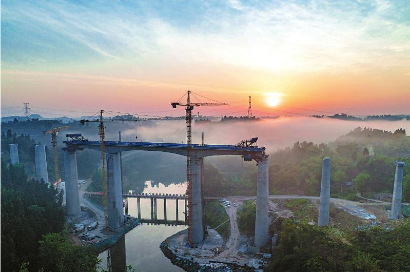 目前,成自高铁路基、桥梁工程已完成75%,全线16座隧道已贯通9座,全线进度如期推进,预计2023年建成通车。