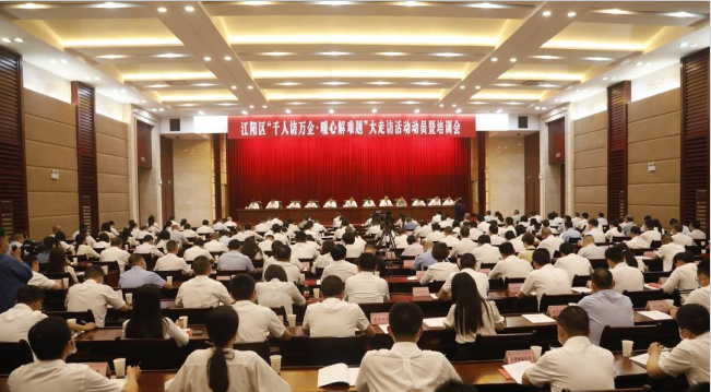5月7日,江阳区“千人访万企、暖心解难题”大走访活动动员暨培训会举行。泸州市委常委、江阳区委书记郭宏川出席会议并讲话,强调全区各级干部要提高站位,认清形势,充分认识“大走访”活动的重要意义,闻令而行、深入企业、真抓实干,迅速掀起访企惠企、纾困暖企、大抓发展的工作热潮,以实实在在的工作成效汇聚“奋进全国百强、建设幸福江阳”的强大动力。区委副书记、区长唐栋良安排部署工作,区人大常委会主任张生勇出席会议,区委副书记刘泽军主持会议。