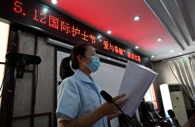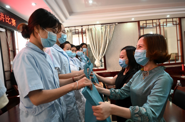 5·12国际护士节到来之际,内江市东兴区东兴社区卫生服务中心专门举办5·12国际护士节“爱与奉献”演讲比赛,旨在以南丁格尔为榜样,通过点点滴滴的日常,自觉弘扬南丁格尔精神,展示护理队伍良好职业风范,激发全体护士的工作热情。比赛中,护士们立足工作实际,演讲激情洋溢,既有平凡而生动的事例,更有缜密而深邃的哲理,深情为我们打开了一个个护士与患者互关互爱的温情画面,一个个感动的瞬间让大家产生了强烈共鸣。凝望着“再也回不去的青春”渐行渐远,处于“疫情”当下的“逆行者”们反倒更加坚持,更加笃定,反倒更加自豪,更加无悔。防护面罩压出的是“最美的印记”,汗水浸透过的是挺直的脊背,甘愿剪去的屡屡青丝是无悔的选择……