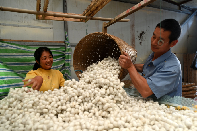 当日,内江市东兴区首批次蚕茧迎来丰收季,各地蚕农抢抓时节采摘蚕茧,订单上市。近年来,东兴区作为“东桑西移”工程优质蚕桑基地县,以种良桑、养好茧为核心,大力推广科学养蚕新技术,成功普及“七季蚕”,大大缩短养蚕周期,降低养蚕成本,提升养蚕效益。据初步测算,该区今年首批次发种4380张,产茧近200吨,实现蚕农增收近1000万元。