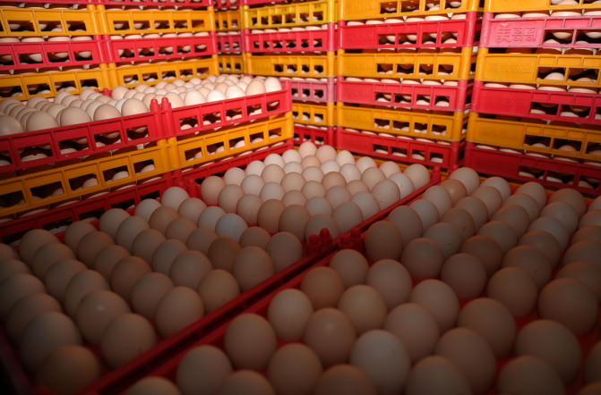 码放整齐的鸡蛋即将装车外运