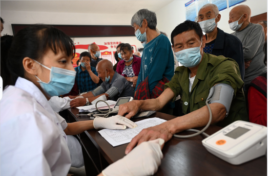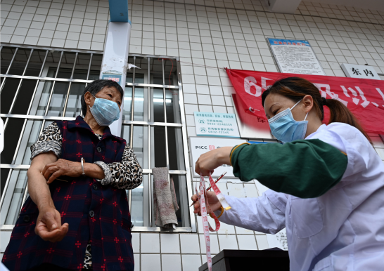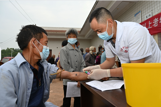 5月30日,在内江市东兴区田家镇经藏村,老年人正在接受血液检查