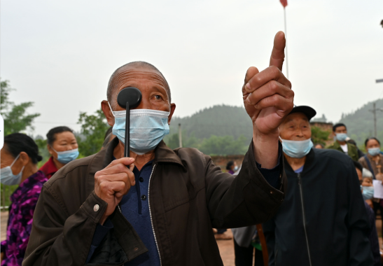 5月30日,在内江市东兴区田家镇经藏村,老年人正在接受视力检查