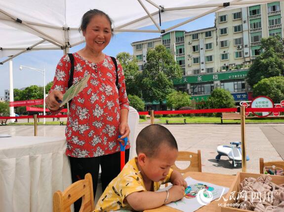 在活动现场,设有展览展示宣传区、中医药文化体验区等区域,让到场群众既能感受到《中华人民共和国中医药法》实施五年来四川全省中医药发展的成就,还能亲自体验中药香囊制作、观看幼儿园小朋友“药画”制作等丰富有趣的中医药文化体验活动。一位大妈带着2岁的小孙子在那里学画“药画”,她说虽然孩子还小不懂画的是什么,但是他也能受到潜移默化的影响和教育。