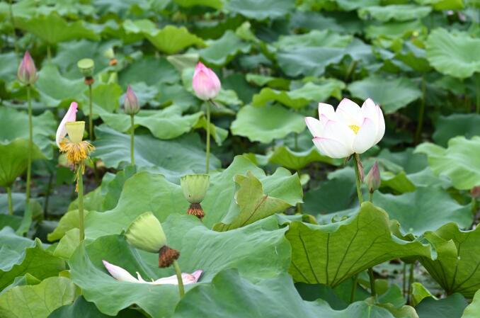 无论是含苞待放的花蕾,还是刚长出来的莲蓬,无不为的美丽的荷塘增姿添色