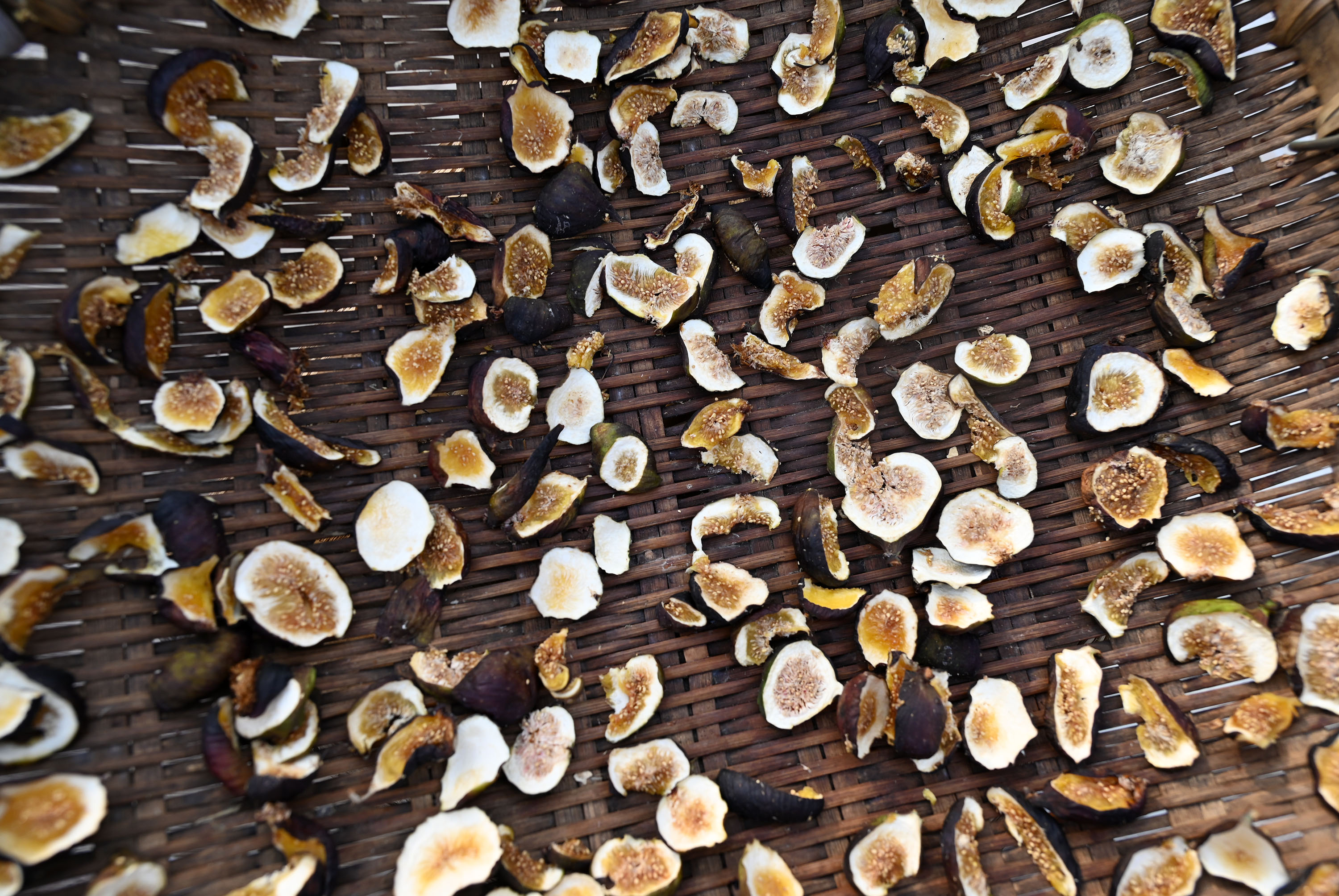 当地果农切片、晾晒无花果