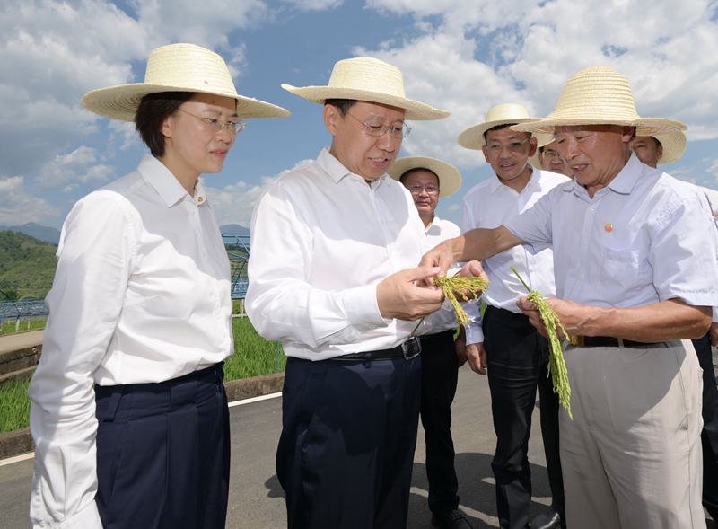 8月11日,省委书记王晓晖到米易县稻菜现代农业园区调研,在园区内的袁隆平第三代杂交水稻超高产攻关示范片,察看高标准农田建设和高产水稻长势,认真比对不同水稻品种结穗数量。
