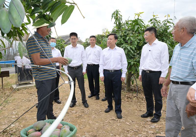 8月12日,省委书记王晓晖到攀枝花市仁和区大龙潭彝族乡混撒拉村万亩芒果种植基地调研,与正在采摘芒果的果农交流,询问了解芒果收成及村民收入情况。
