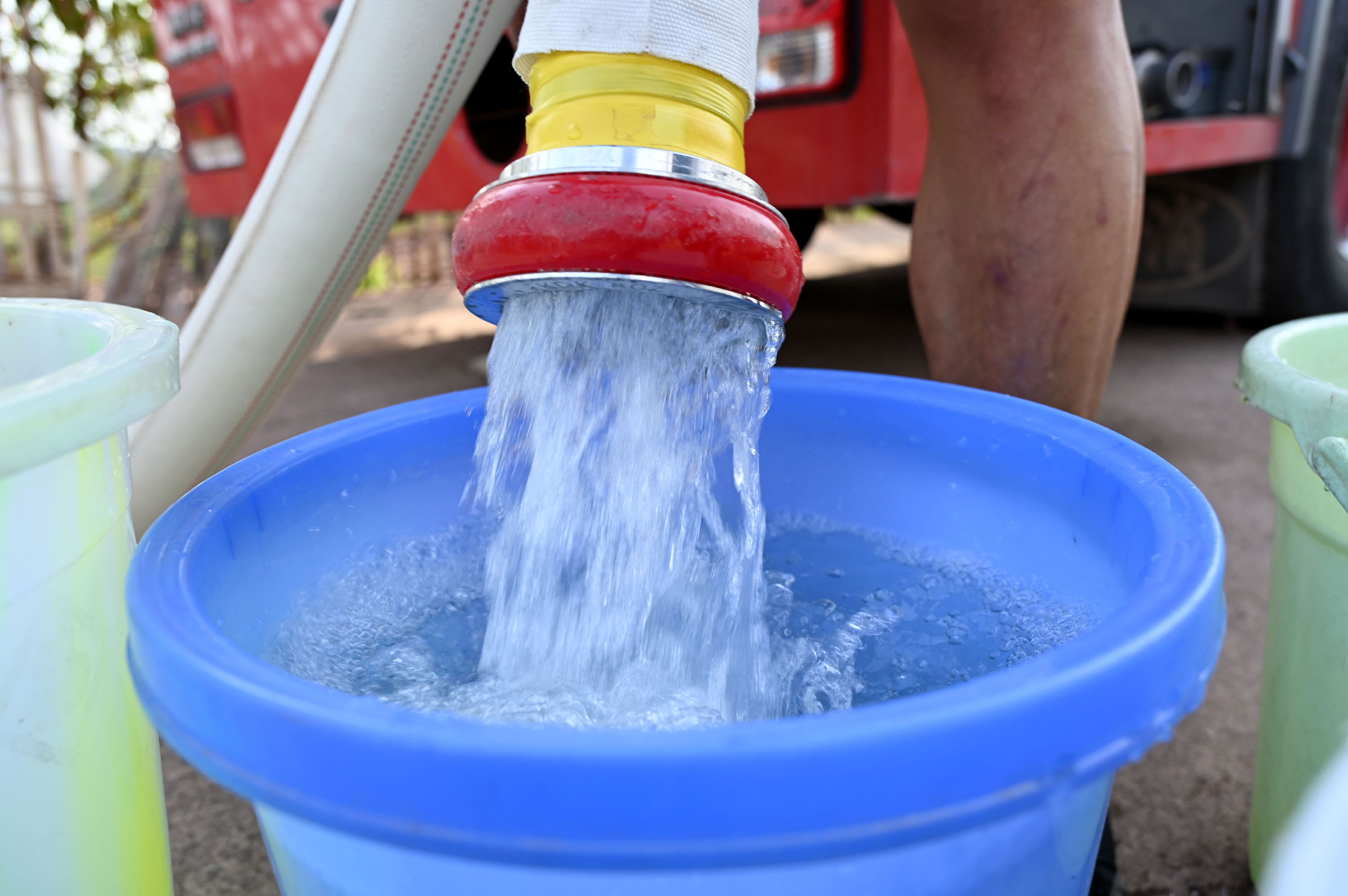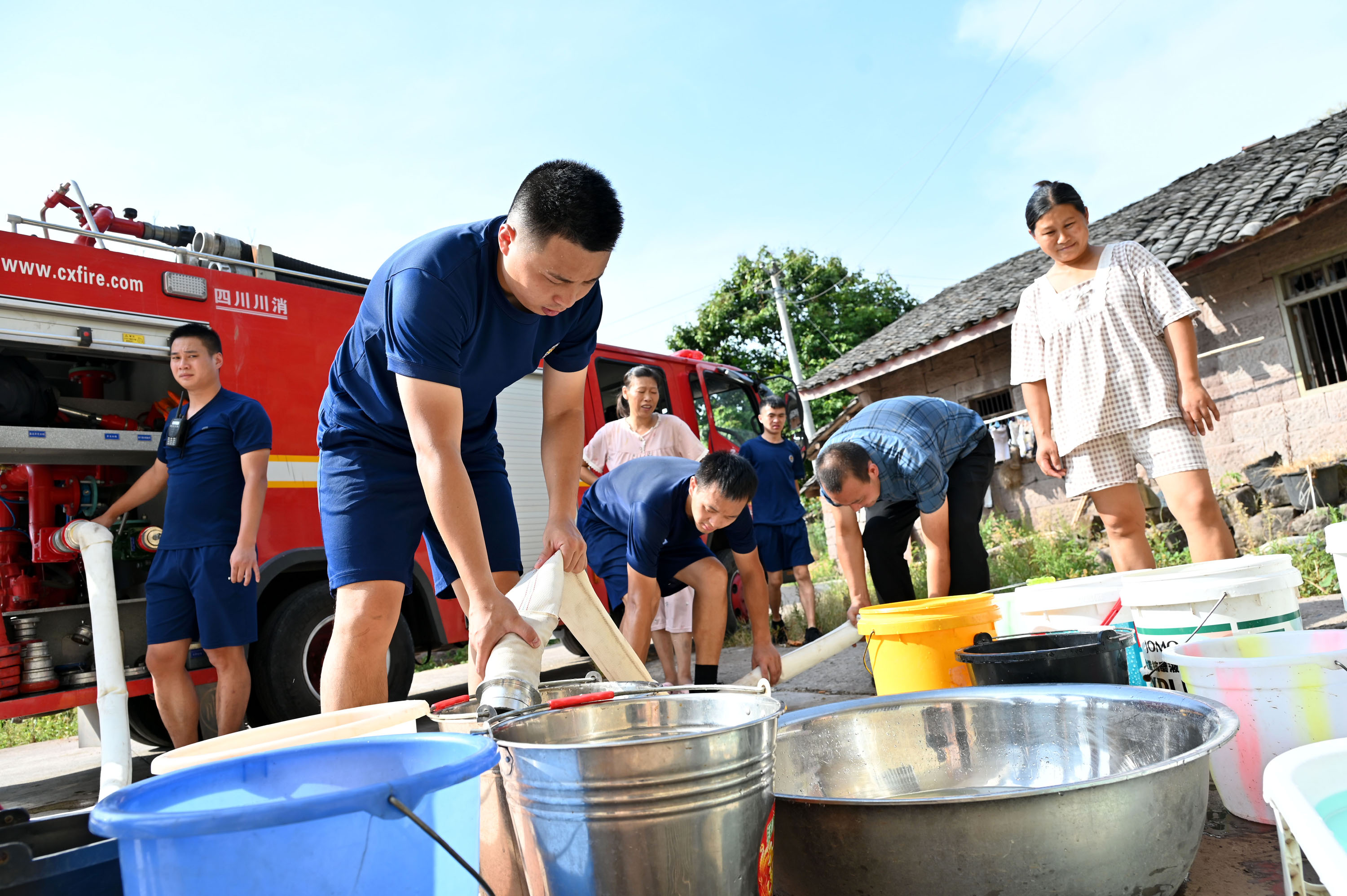 消防救援车送来了清冽甘甜的生活用水