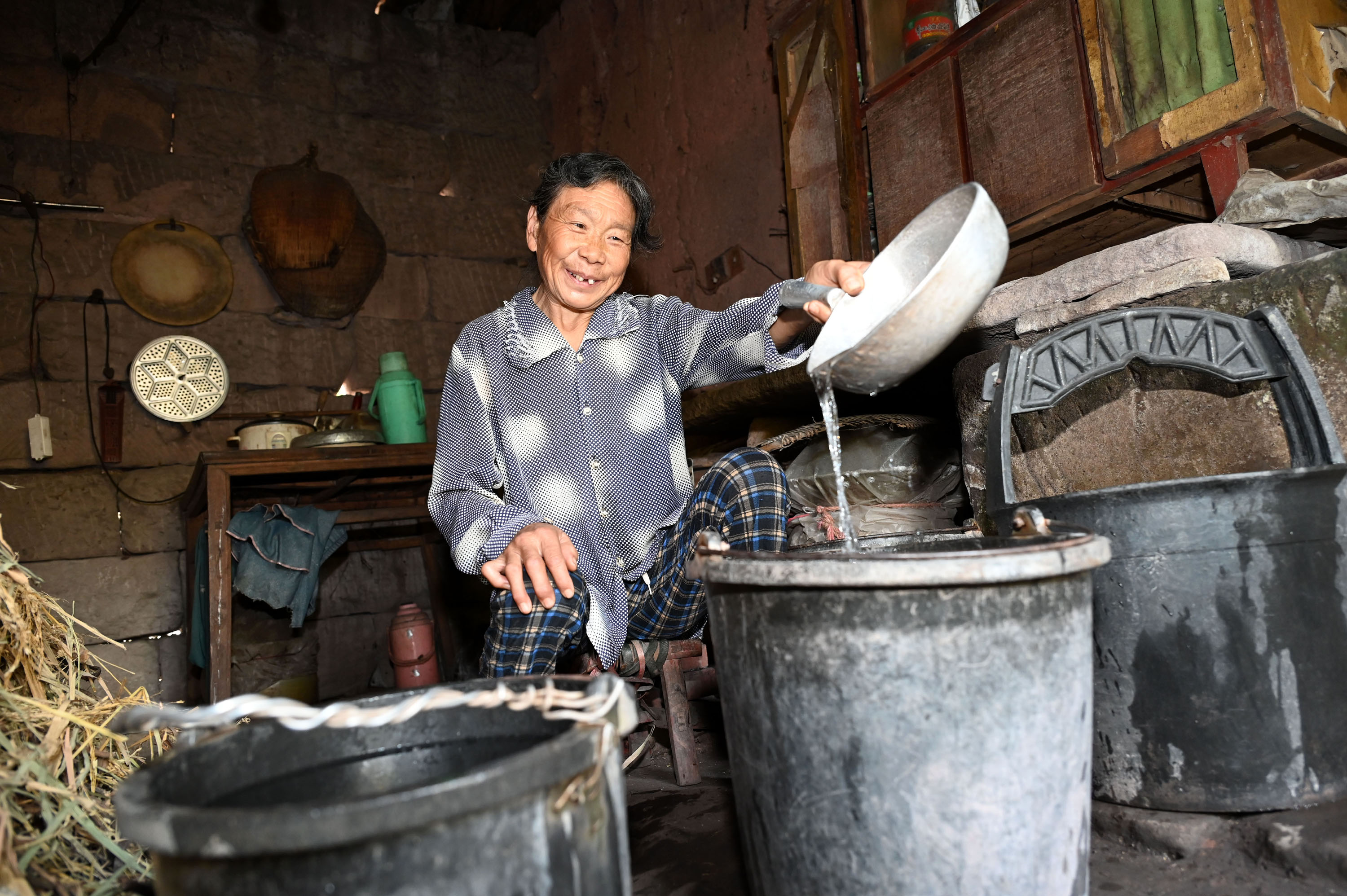 喝着消防救援人员送来的“及时雨”,当地群众高兴地笑了