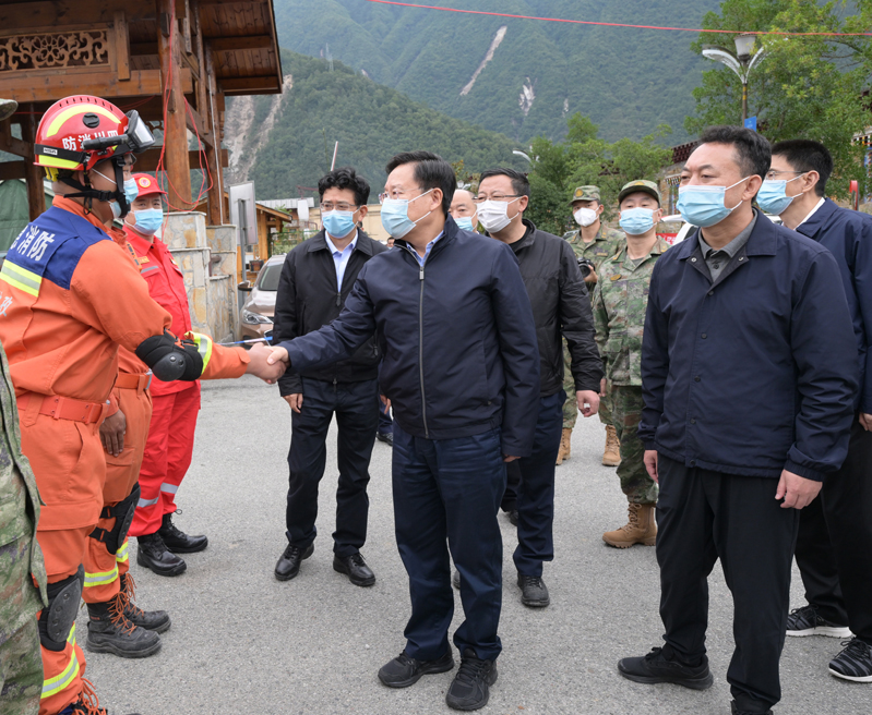 9月7日,省委书记王晓晖到“9•5”泸定地震震中磨西镇了解灾情,调研指导抗震救灾工作,看望慰问受灾群众和抢险救援人员。
